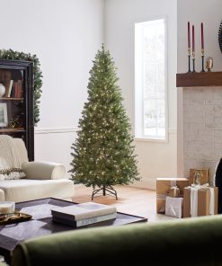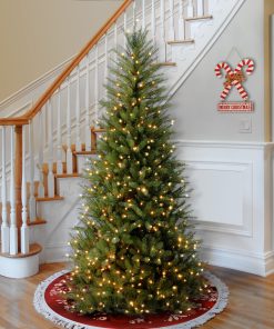 The Dunhill Fir is a slim profile tree that is a great choice for display in corners. small rooms or areas with limited floor space. It is pre-strung with 500 clear lights that remain lit even if a bulb burns out. This tree features hinged branches for ease of assembly. Sturdy folding metal tree stand is included.