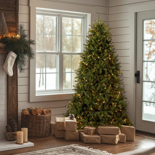 This Dunhill Fir tree features the PowerConnect through-the-pole lighting system that eliminates the need for connecting multiple light strings. It is pre-string with 600 Dual Colorlights that change from warm white to multicolor with the touch of a button. Included is a foot pedal switch to control 10 different light colors and actions. This tree features hinged branch construction for ease of assembly. Sturdy metal tree stand is included.