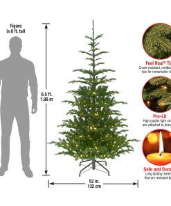 - This Norwegian Spruce Pre-Lit Artificial Green Christmas Tree is 6.5 feet tall with a 52 inch base diameter. Featuring hundreds of Feel Real individually crafted branch tips to create full bodied branches. this tree is designed to look and feel lifelike