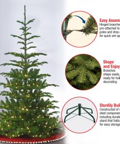 This Norwegian Spruce tree features Feel Real branch tip technology. creating a tree with remarkable realism. These crush-resistant branch tips are molded from real tree branches for an authentic living tree appearance. This tree has a traditional cone shape with upswept branch design and is pre-strung with 650 clear lights that remain lit even if a bulb burns out. This tree features hinged branch construction for ease of assembly. Sturdy metal tree stand is included.