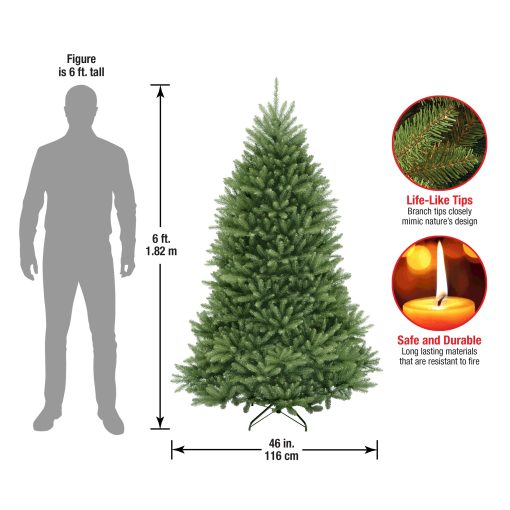- This Dunhill Fir Full Artificial Green Christmas Tree is 6 feet tall with a 46 inch base diameter. Featuring hundreds of individually crafted branch tips to create full bodied branches. this tree is designed to look and feel lifelike.