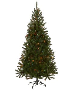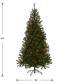 The Aspen Spruce is a full body tree featuring a generous number of branch tips for holding holiday trimmings. It is pre-strung with 300 multicolor lights that remain lit even if a bulb burns out. This tree features hinged branches for ease of assembly. Sturdy folding metal tree stand is included. The
