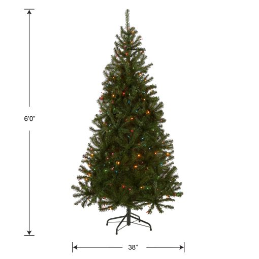 The Aspen Spruce is a full body tree featuring a generous number of branch tips for holding holiday trimmings. It is pre-strung with 300 multicolor lights that remain lit even if a bulb burns out. This tree features hinged branches for ease of assembly. Sturdy folding metal tree stand is included. The