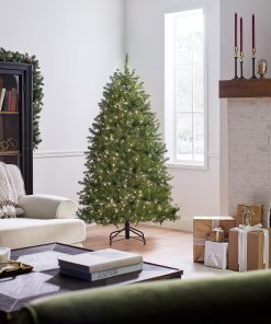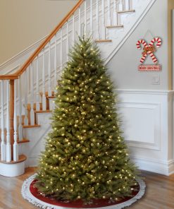 The Dunhill Fir is a full body tree featuring a generous number of branch tips for holding holiday trimmings. It is pre-strung with 600 clear lights that remain lit even if a bulb burns out. This tree features hinged branch construction for ease of assembly. Sturdy folding metal tree stand is included.