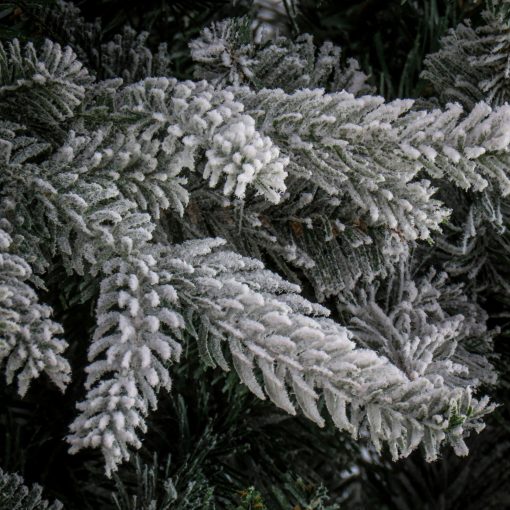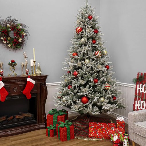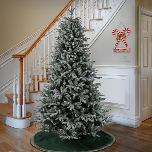 This Holliston tree features Feel Real branch tip technology. creating a tree with remarkable realism. These crush-resistant branch tips are molded from real tree branches for an authentic living tree appearance. It features flocked branches. adding to its snowy charm and making it a stunning centerpiece for your holiday decor. Perfect for creating a cozy. festive atmosphere! Designed with hinged branches for easy assembly and includes a sturdy metal folding stand. For indoor display only.