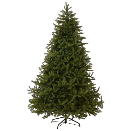This Norway Fir tree features Feel Real branch tip technology. creating a tree with remarkable realism. These crush-resistant branch tips are molded from real tree branches for an authentic living tree appearance. This tree has a traditional cone shape and upswept branch design. This tree features hinged branch construction for ease of assembly. Sturdy metal tree stand is included.