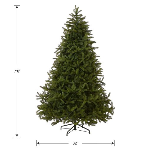 - This Norway Fir Artificial Green Christmas Tree is 7.5 feet tall with a 62 inch base diameter. Featuring hundreds of Feel Real individually crafted branch tips to create full bodied branches.