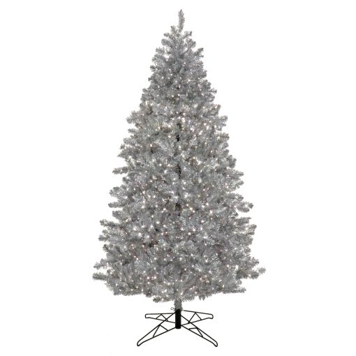 Bring a whole new dimension to your holiday decorating with this evergreen tree featuring sparkling metallic branch tips. This thick. full-bodied tree is strung with 1250 cool white LED Infinity Lights which are micro-LED bulbs built right into the light strings. This design allows for an increased volume of lights and cleaner overall look that provides a distinctly elegant result. Three-section. hinged branch construction makes assembly quick and easy. Sturdy folding metal tree stand is and lights ON/OFF footswitch included.