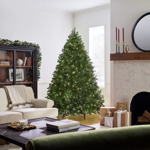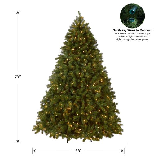 This Downswept DouglasFir tree features the PowerConnect through-the-pole lighting system that eliminates the need for connecting multiple light strings. reducing set up time. Also featured is Feel Real branch tip technology. creating a tree with remarkable realism. This tree is pre-strung with 1200 Dual Colorlights that change from warm white to multicolor with the touch of a button. Included is a foot pedal switch to control 10 different light colors and actions. This tree features hinged branch construction for ease of assembly. Sturdy metal tree stand is included.
