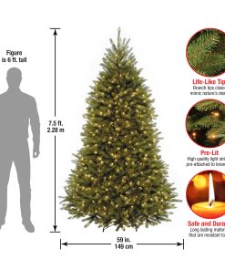 The Dunhill Fir is a full body tree featuring a generous number of branch tips for holding holiday trimmings. It is pre-lit with 750 clear lights for an elegant holiday glow. Hinged branch construction make setup and takedown a breeze. Metal folding stand include. for indoor use only.