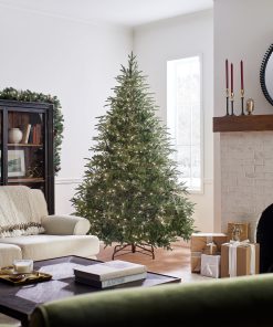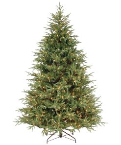 This Frasier Grande tree features Feel Real branch tip technology. creating a tree with remarkable realism. These crush-resistant branch tips are molded from real tree branches for an authentic living tree appearance. This tree is pre-strung with 1000 clear lights that remain lit even if a bulb burns out. This tree features hinged branch construction for ease of assembly. Sturdy metal tree stand is included.