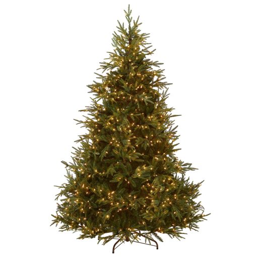 This Frasier Grande tree features Feel Real branch tip technology. creating a tree with remarkable realism. These crush-resistant branch tips are molded from real tree branches for an authentic living tree appearance. This tree is pre-strung with 1000 clear lights that remain lit even if a bulb burns out. This tree features hinged branch construction for ease of assembly. Sturdy metal tree stand is included.
