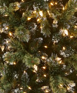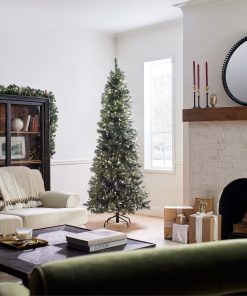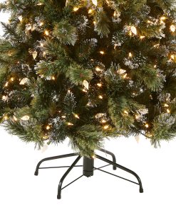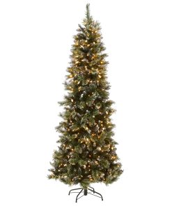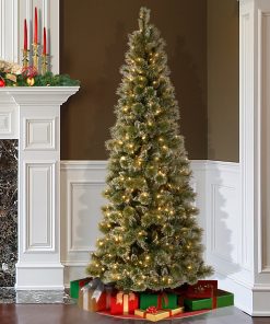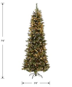 The Glittery Bristle Pine Slim is a mixed branch tree featuring sparkled bristle and slim profile that’s great for display in areas with limited floor space. It is pre-strung with 600 warm white low voltage LED lights that are energy-efficient and long lasting. This tree features hinged branch construction for ease of assembly. Sturdy metal tree stand is included.