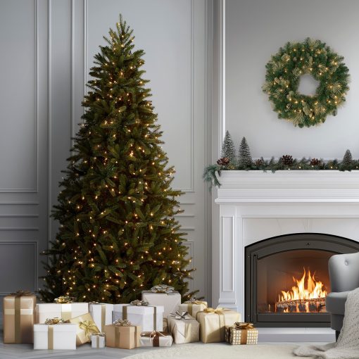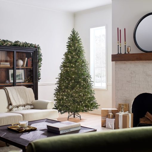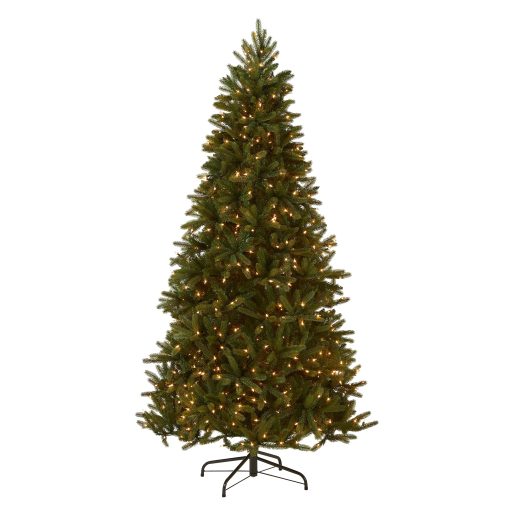 This Grande Fir Medium tree features Feel Real branch tip technology. creating a tree with remarkable realism. These crush-resistant branch tips are molded from real tree branches for an authentic living tree appearance. This tree is pre-strung with 750 clear lights that remain lit even if a bulb burns out. The medium width of this tree may be a better fit in areas where floor space is limited. This tree features hinged branch construction for ease of assembly. Sturdy metal tree stand is included.