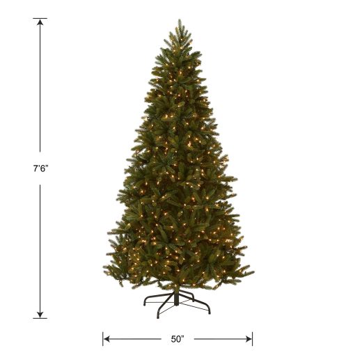 - This Grande Fir Pre-Lit Artificial Green Christmas Tree is 7.5 feet tall with a 50 inch base diameter. Featuring hundreds of Feel Real individually crafted branch tips to create full bodied branches. this tree is designed to look and feel lifelike.