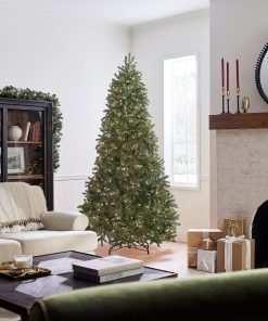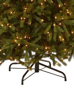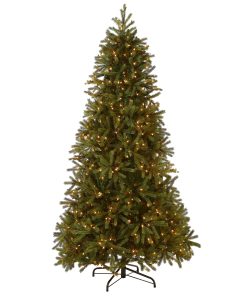 This Jersey Fraser Fir tree features Feel Real branch tip technology. creating a tree with remarkable realism. These crush-resistant branch tips are molded from real tree branches for an authentic living tree appearance. This full-bodied tree is pre-strung with 800 clear lights that remain lit even if a bulb burns out. The slim profile allows for a better fit in corners or limited space areas. This tree features hinged branch construction for ease of assembly. Sturdy metal tree stand is included.