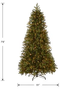- This Jersey Fraser Fir Pre-Lit Artificial Green Christmas Tree is 7.5 feet tall with a 51 inch base diameter. Featuring hundreds of Feel Real individually crafted branch tips to create full bodied branches. this tree is designed to look and feel lifelik