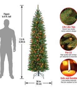 - This Kingswood Fir Slim Pre-Lit Artificial Green Christmas Tree is 7.5 feet tall with a 30 inch base diameter. Featuring hundreds of individually crafted branch tips to create full bodied branches. this tree is designed to look and feel lifelike.