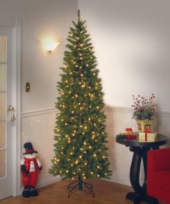 - This Kingswood Fir Slim Pre-Lit Artificial Green Christmas Tree is 7.5 feet tall with a 30 inch base diameter. Featuring hundreds of individually crafted branch tips to create full bodied branches. this tree is designed to look and feel lifelike.