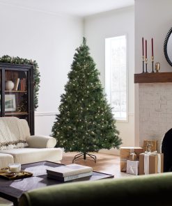 The Winchester Pine is a full body tree featuring a generous number of branch tips for holding holiday trimmings. It is pre-strung with 500 clear lights that remain lit even if a bulb burns out. This tree features hinged branches for ease of assembly. Sturdy folding metal tree stand is included.