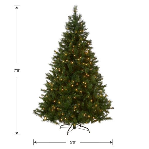- This Winchester Pine Full Pre-Lit Artificial Green Christmas Tree is 7.5 feet tall with a 60 inch base diameter. Featuring hundreds of Feel Real individually crafted branch tips to create full bodied branches. this tree is designed to look and feel life