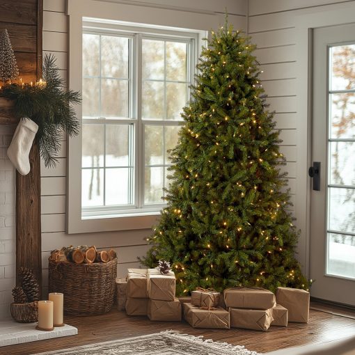 This Dunhill Fir tree features the PowerConnect through-the-pole lighting system that eliminates the need for connecting multiple light strings. It is pre-strung with 650 Dual Colorlights that change from warm white to multicolor with the touch of a button. Included is a foot pedal switch to control 10 different light colors and actions. This tree features hinged branch construction for ease of assembly. Sturdy metal tree stand is included.