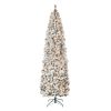 The Acacia tree offers a slim profile that makes it a great choice for display in corners or in areas where floor space is limited. This tree features flocked branches giving the appearance of freshly fallen snow. It is pre-lit with 500 clear lights that remain lit even if a bulb burns out. This tree features hinged branches for ease of assembly. Sturdy folding metal tree stand is included.