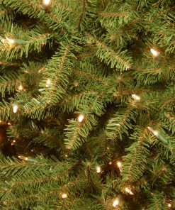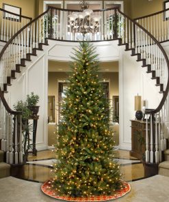Though tall in height. this Dunhill Fir tree offers a slimmer profile which may make it better for display in corners or areas with limited floor space. compared to typical trees of similar height. It is pre-strung with 800 clear lights that remain lit even if a bulb burns out. This tree features hinged branch construction for ease of assembly. Sturdy folding metal tree stand is included.