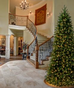 This Jersey Fraser Fir tree features Feel Real branch tip technology. creating a tree with remarkable realism. These crush-resistant branch tips are molded from real tree branches for an authentic living tree appearance. This full-bodied tree is pre-strung with 1000 clear lights that remain lit even if a bulb burns out. The slim profile allows for a better fit in corners or limited space areas. This tree features hinged branch construction for ease of assembly. Sturdy metal tree stand is included.