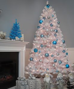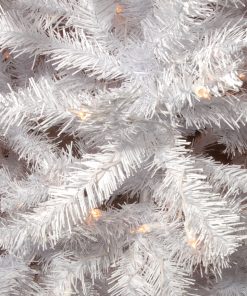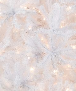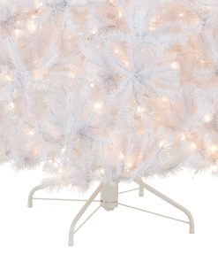 The North Valley White Spruce is an attractive alternative to the traditional green holiday tree. This spruce tree with glittered tips is pre-strung with 750 clear lights that remain lit even if a bulb burns out. This tree features hinged branch construction for ease of assembly. Sturdy metal tree stand is included.