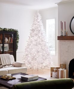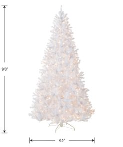 - This North Valley Spruce Full Pre-Lit Artificial White Christmas Tree is 9 feet tall with a 65 inch base diameter. Featuring hundreds of individually crafted branch tips to create full bodied branches. this tree is designed to look and feel lifelike.