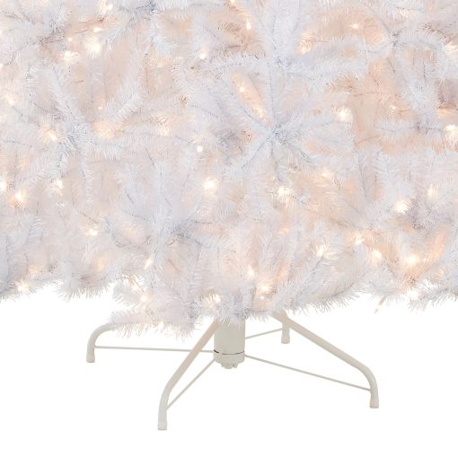 The North Valley White Spruce is an attractive alternative to the traditional green holiday tree. This spruce tree with glittered tips is pre-strung with 750 clear lights that remain lit even if a bulb burns out. This tree features hinged branch construction for ease of assembly. Sturdy metal tree stand is included.