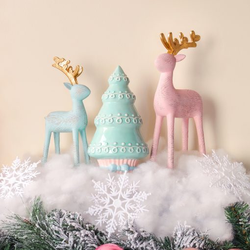 Highly stylized in design. this Woodgrain Deer Figurine features long slender legs and contrasting bright gold multi-branch antlers. It is constructed with a combination of durable stone powder and poly resin materials in a soft pastel blue color with simulate The Woodgrain Deer Figurine with gold antlers is charming and stylish! It is constructed with a combination of durable stone powder and poly resin materials in a soft pastel blue color. It would make a lovely decorative accent. adding a touch of nature-inspired elegance to any space.