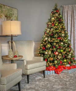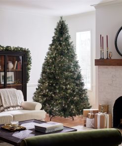 This Carolina Pine tree is a full body tree featuring mixed bristle and cashmere branch tips and is trimmed with pinecones. It is pre-strung with 900 clear lights that remain lit even if a bulb burns out. This tree features hinged branches for ease of assembly. Sturdy folding metal tree stand is included.