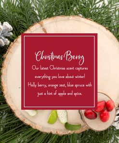 - Christmas Berry scent features notes of Holly Berry. Blue Spruce. Cedarwood. and warm spices.
