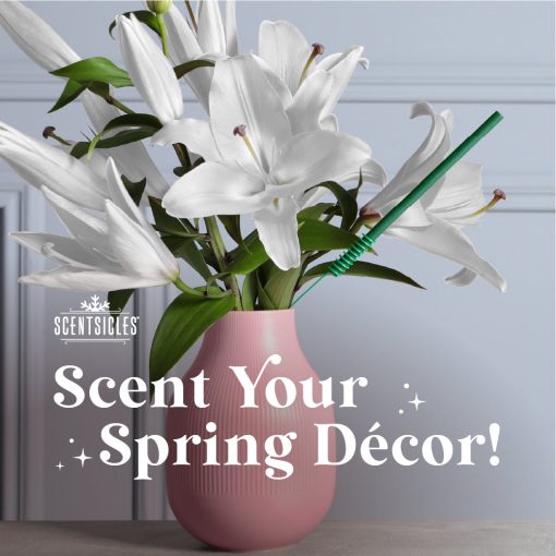 NEW Sun-Soaked Lavender doesn’t shy away from being authentic with fresh. herbaceous. just-picked scent. It takes you right to a peaceful lavender field under a clear blue sky with sun on your face and the scent of lavender on the wind. Featuring notes of lavender. crisp ozone. eucalyptus. and driftwood. Paired with NEW Honeysuckle Rose which captures the essence of spring’s charm. with the sweet fragrance of honeysuckle intertwined with the natural scent of fresh-cut roses. This is not your Grandma’s rose perfume – this is a very fresh floral experience featuring notes of rose water. aloe and green leaves. citron. honeysuckle. and sandalwood. Included are NEW Scenter Stakes. making it easy to enhance your florals and plants with Real. Fresh-Cut scent. Simply add a Scented Ornament stick to the end of the Scenter Stake and place in plants (dirt. water. faux foam. etc.). leaving enough of the stick exposed to diffuse scent. Made of sustainable paper and infused fully with pure fragrance. Scentsicles Scented Ornament Sticks bring plants. florals. wreaths. and greenery to life for 30 days or more!