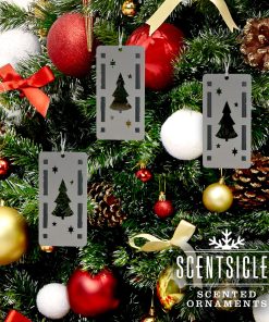 - Bundle with a set of 3 decorative scented ornament holders and bottle with 6 Scented Ornament sticks and hooks