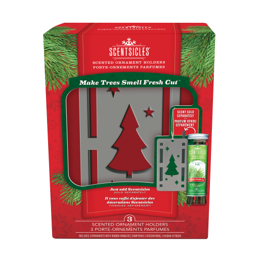 Fill your home with the fresh-cut scent of Christmas with the Decorative Scented Ornament Holder. With this set of 3 holders. fill each with 2 fragrance-infused sticks and watch as the holiday scents fill your home.