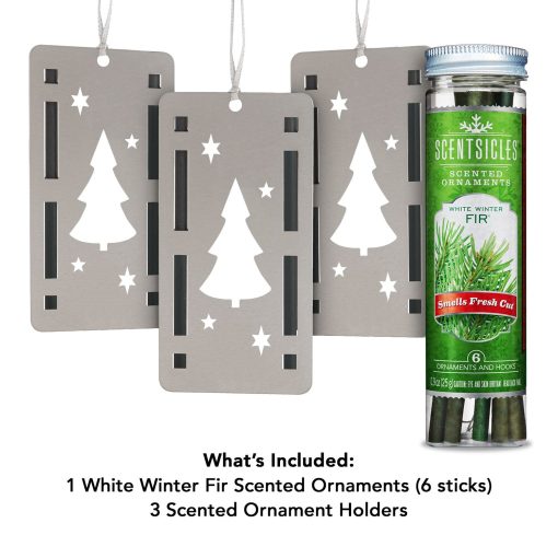 - Bundle with a set of 3 decorative scented ornament holders and bottle with 6 Scented Ornament sticks and hooks